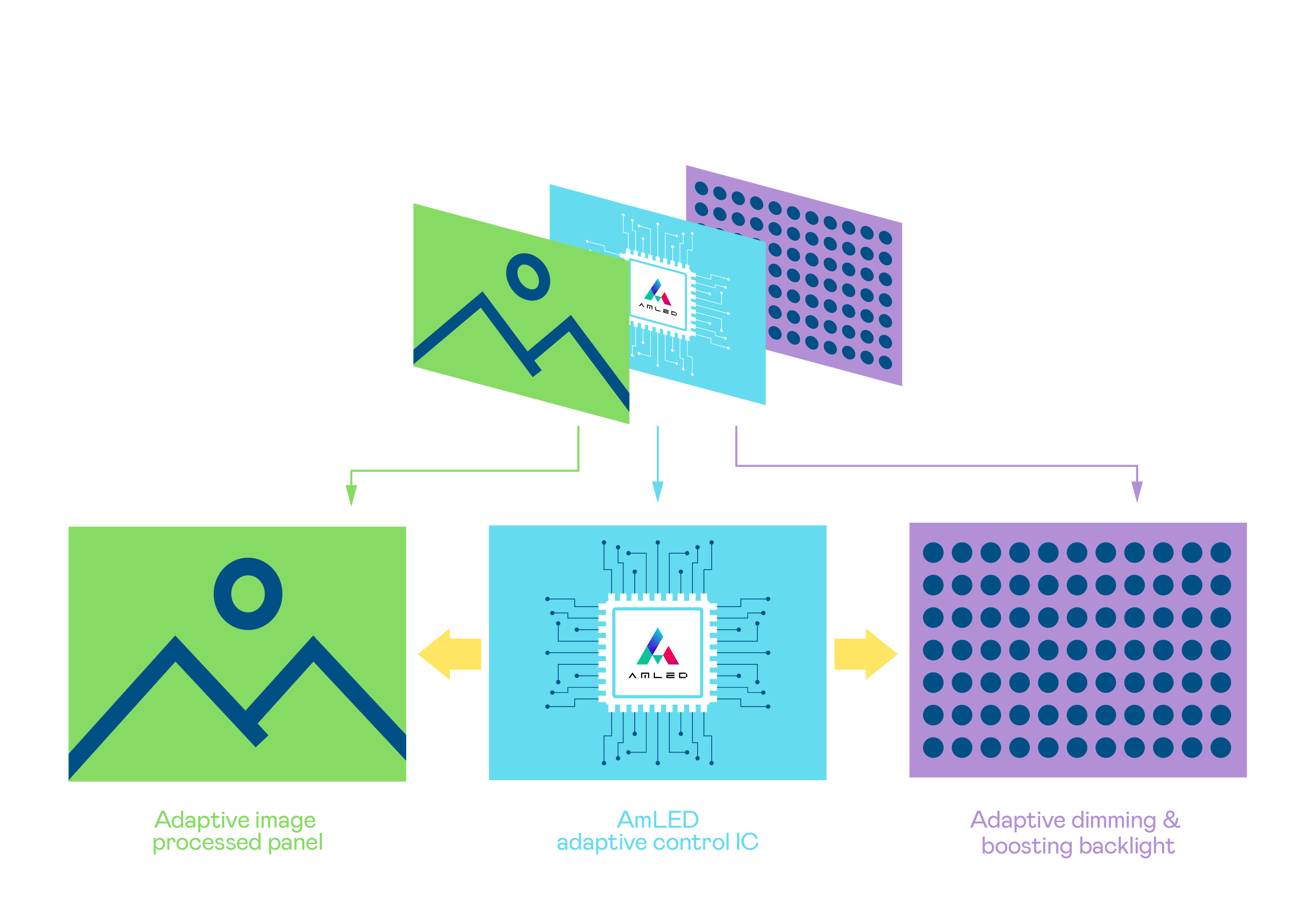 AmLED 具備更省電與低藍光特性。與一般的 LED 背光顯示技術相比,由於 AmLED 常時處於局部調光狀態,其功耗僅有前者的 50% 左右,同時 AmLED 還具備低藍光特性,滿足長時間使用的護眼需求。